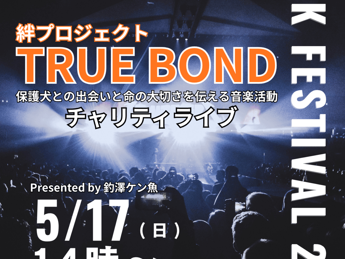 皆さま、こんにちは!絆プロジェクトです。 暖かな春の訪れとともに、今年も熱いイベントの開催が決定いたしました! 「保護犬との出会いと命の大切さを伝える」という想いを胸に、音楽を通じて絆を深めるチャリティライブを開催します。 ROCK FESTIVAL 2026 「TRUE BOND」 今回のイベントは、釣澤...